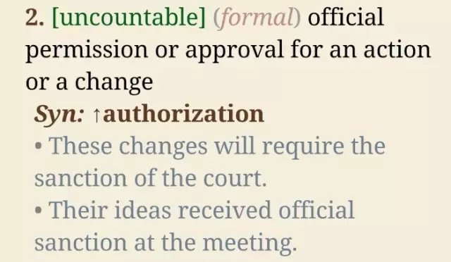 读例句是一种能让你快速准确记住单词的方式。在例句中我们可以明确单词的搭配,使用场景和一词多义现象等。举个例子,sanction 这个单词既可以表示“制裁,惩罚”,又可以表示“正式许可,批准,接受”,怎样理解这看起来很矛盾的一对解释呢?查一查英英词典,读读其中的例句吧。
