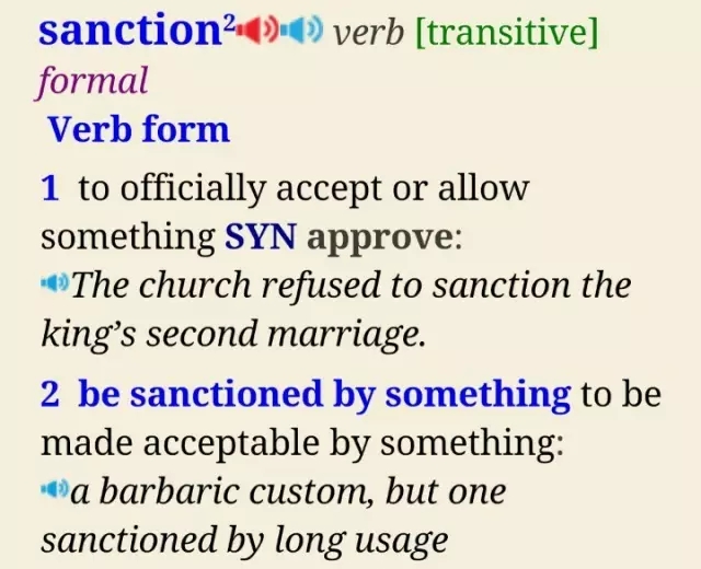 当sanction 作为动词使用时,则表示“批准,认可”