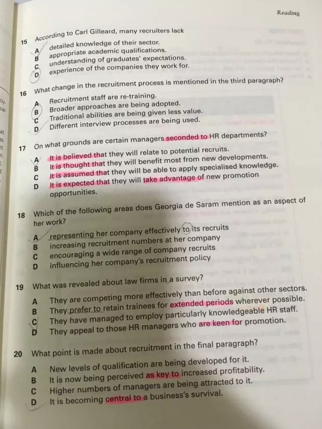 图中是BEC商务英语考试的阅读题,第17题的表述是"On what grounds are certain managers seconded to HR departments?" 是不是发现题目读不太懂?这里涉及到熟词生义的问题,second 这个词无比常见,但知道 be seconded to something 的人还真不多,它的含义是“临时调派,借调”。如果没学过这个用法,题目的理解就会出偏差。